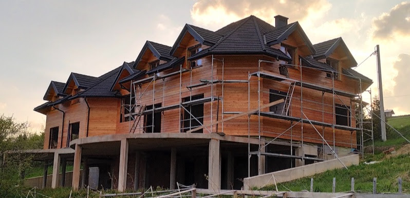The latest exciting news – Our wonderful carpenters completed the exterior insulation and are now adding final touches to the larch wood siding. As you can see in the photo, we have made great progress.
