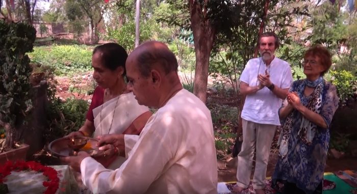 aarti2 crop From left, Anjali and Abhay Paranjpe and Bruce Johnson and Anne Godfrey at the anniversary ceremony.